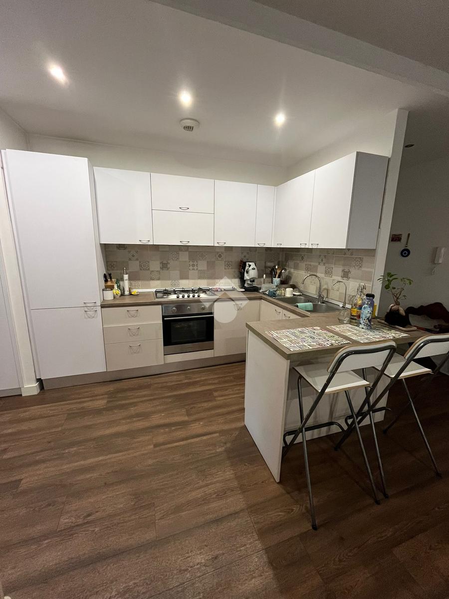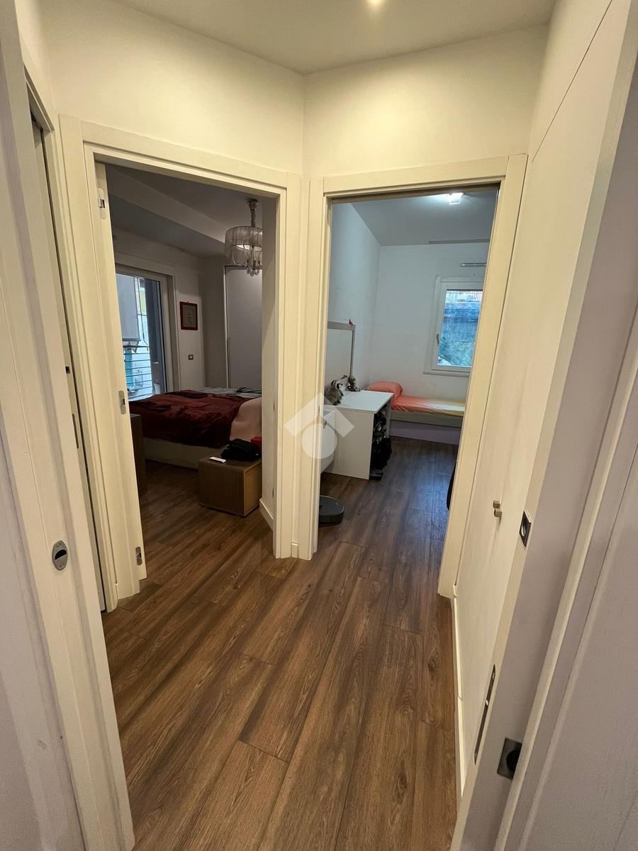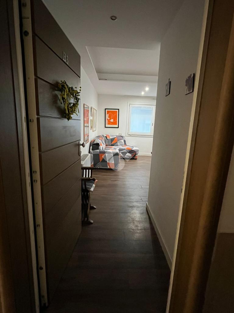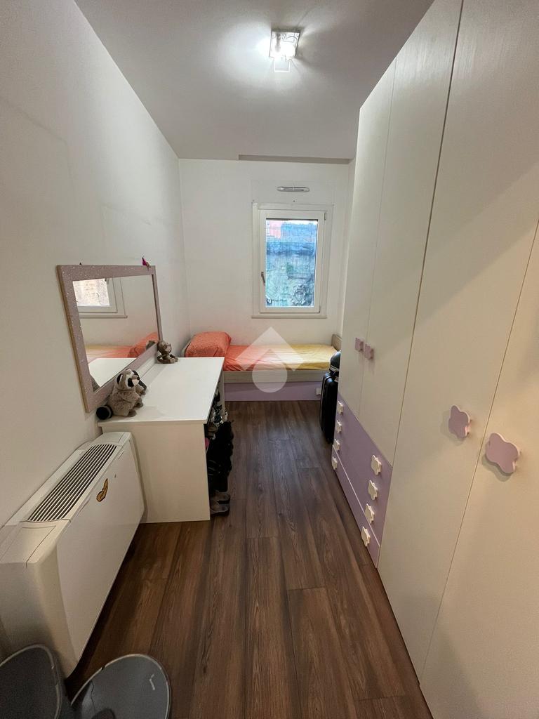 L'appartamento, posizionato al secondo piano con ascensore, è internamente suddiviso in un soggiorno living con cucina a vista, una camera da letto, una cameretta e un bagno. Il cespite vanta numerosi punti luce, in particolare grazie a un'ampia balconata accessibile dal salone e dalla camera da letto.