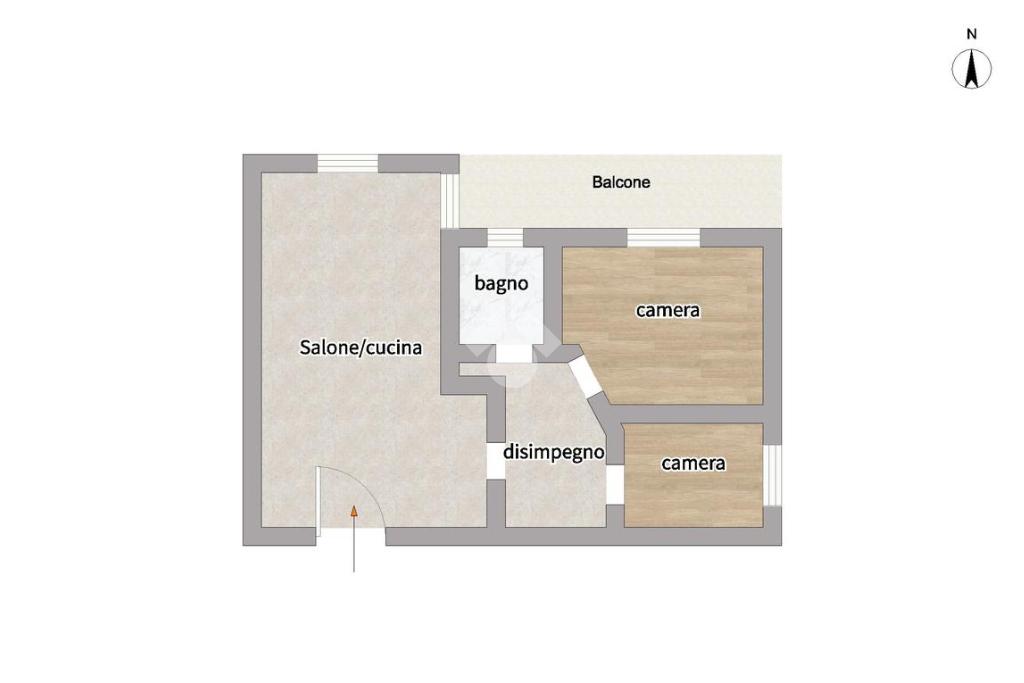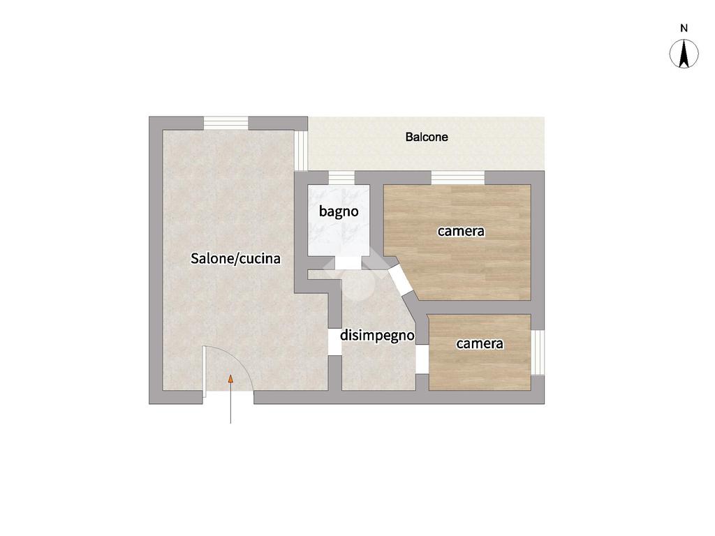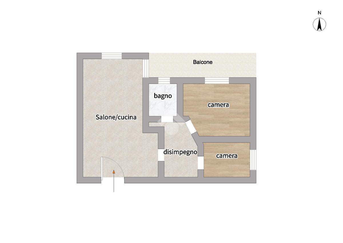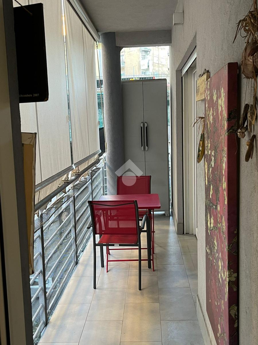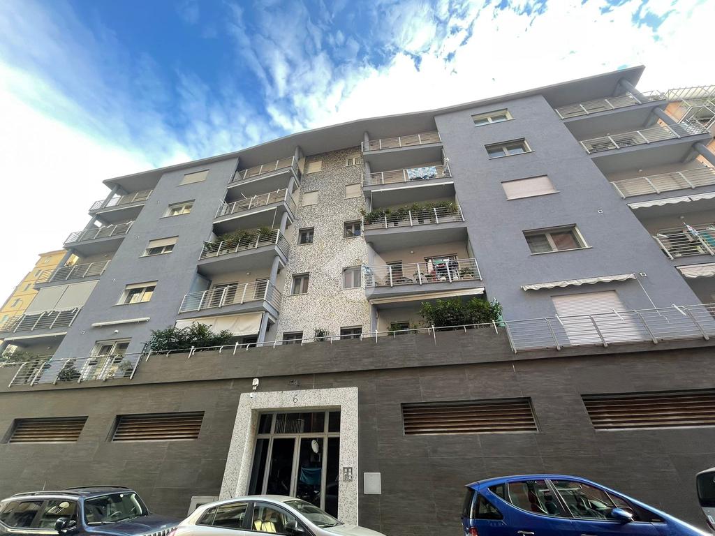 L'appartamento, posizionato al secondo piano con ascensore, è internamente suddiviso in un soggiorno living con cucina a vista, una camera da letto, una cameretta e un bagno. Il cespite vanta numerosi punti luce, in particolare grazie a un'ampia balconata accessibile dal salone e dalla camera da letto.