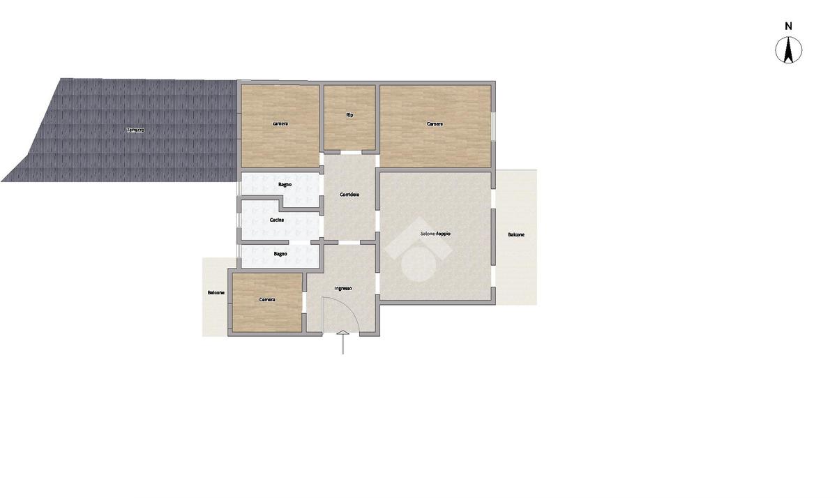 L'appartamento si presenta in discreto stato manutentivo,su 130 mq calpestabili, presenta una disposizione funzionale e ariosa: un ampio ingresso introduce a un salone doppio, seguito da due spaziose camere da letto, uno studio/camera, una cucina abitabile, due bagni e un grande ripostiglio. Due generose balconate offrono affacci su via Mario Fiore e sul retro dello stabile, mentre un ampio terrazzo a livello completa questa raffinata soluzione abitativa.